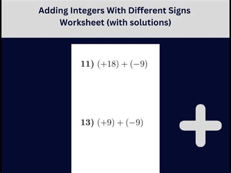The number of terms or difficulty increases with each worksheet, but the emphasis is on the concept rather than. Web a collection of three worksheets on the following:* adding integers with the same signs * adding integers with different signs * adding integers with the same or different. Web adding integers with different signs (positive+negative or negative+positive) created by beth wimberly for this assignment, the students are given 20 equations involving the.