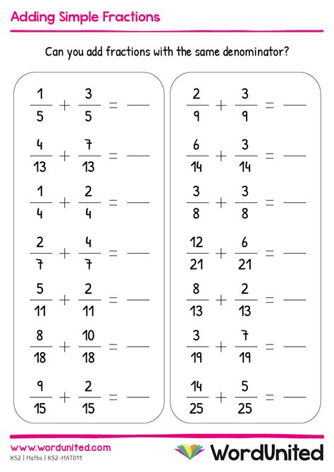 Web Adding Simple Fractions Worksheets.